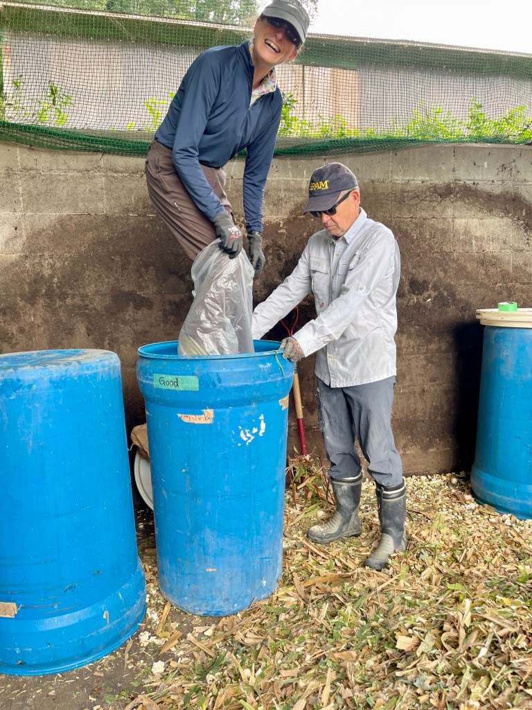 In some ways we were an anomaly at ARI. First, we both were older long-term volunteers who did the full course of farm labor. Shoveling and bagging compost? Check. Harvesting rice? Sure. Feeding and weighing pigs? Oink. Weeding soybean fields? Yup. R-E-S-P-E-C-T. There were a few other volunteers who were about our age, but they only worked in the kitchen or the office.