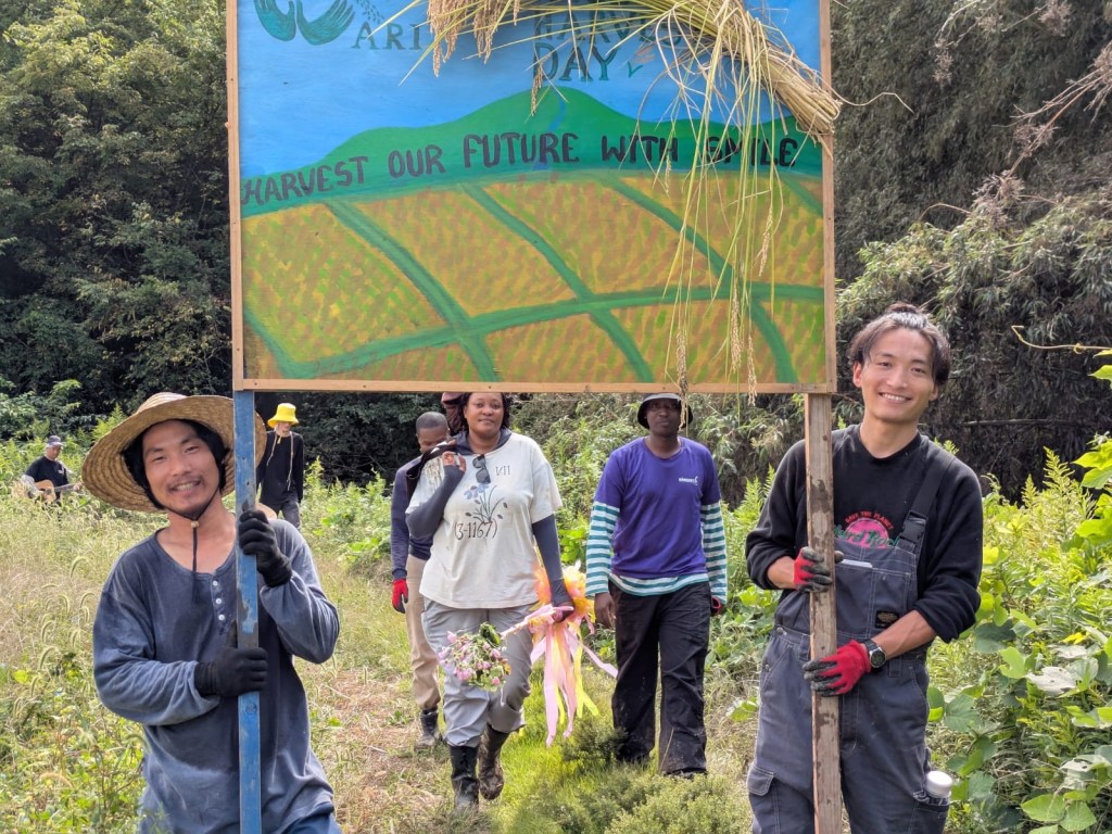 Friday the entire ARI community joined to harvest the final paddy by hand. In true ARI it fashion was a party, literally. We sang a song written for the occasion while marching to the paddy in front of a special banner.